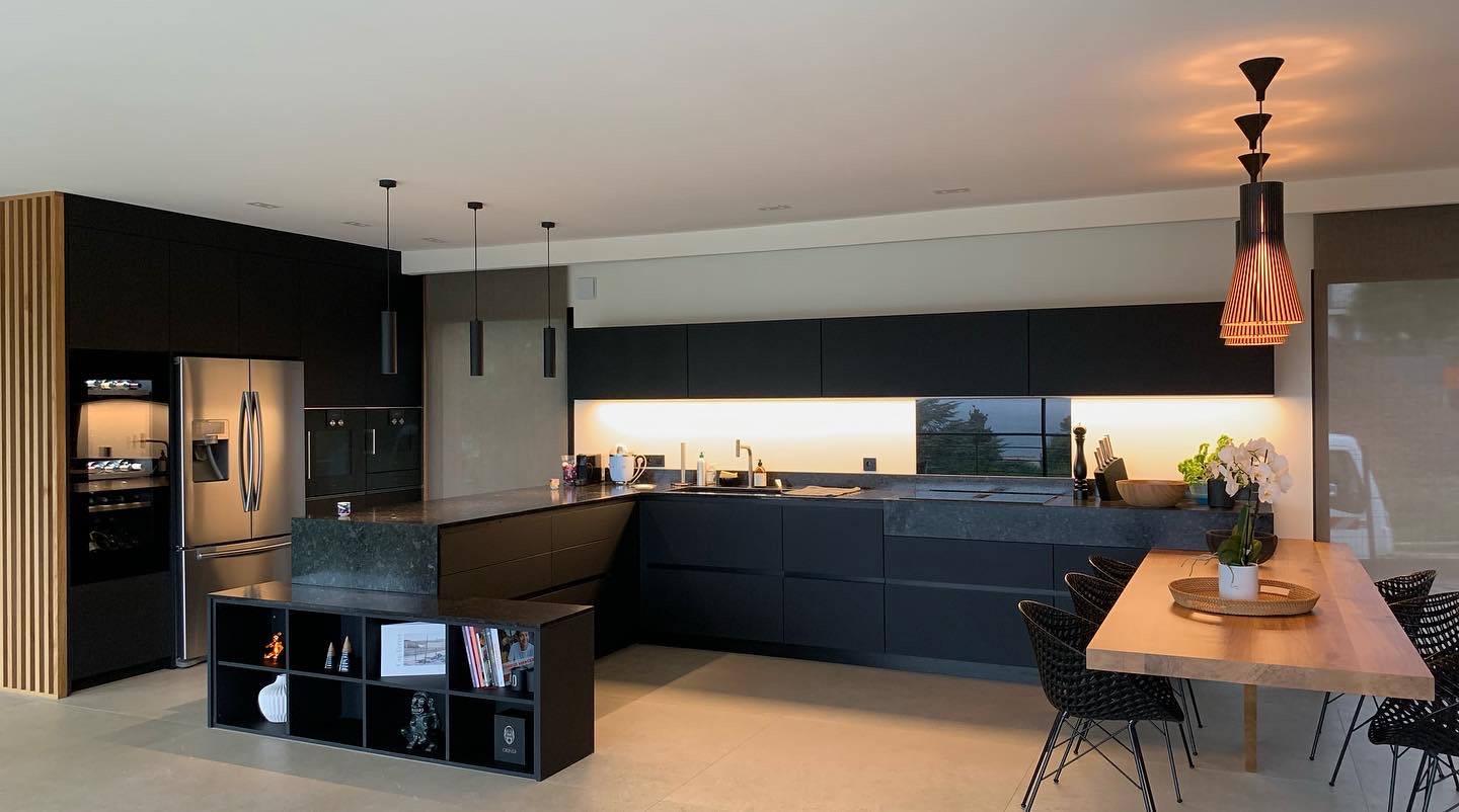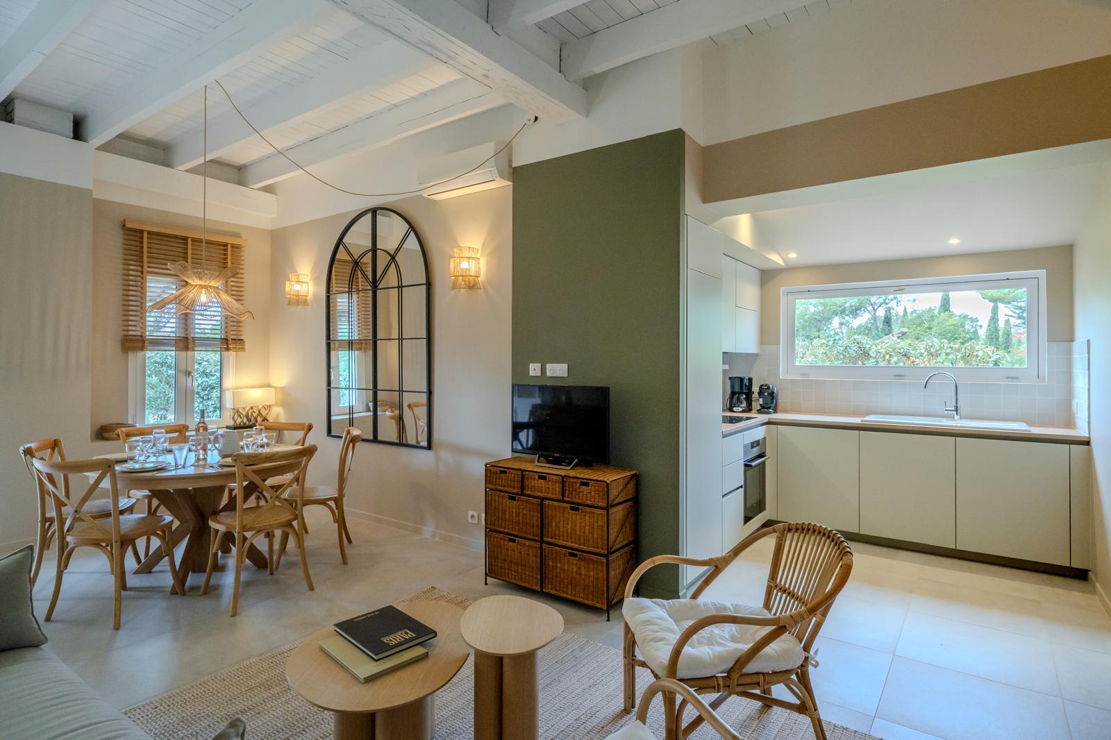 Les Ateliers du Sud ont réalisé la conception et l’aménagement complets de la cuisine et du salon d’une villa sur la presqu’île de Giens à Hyères.